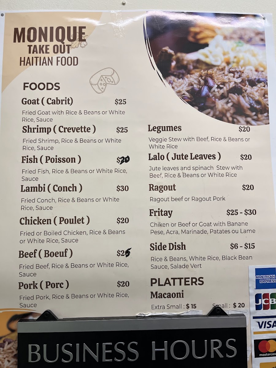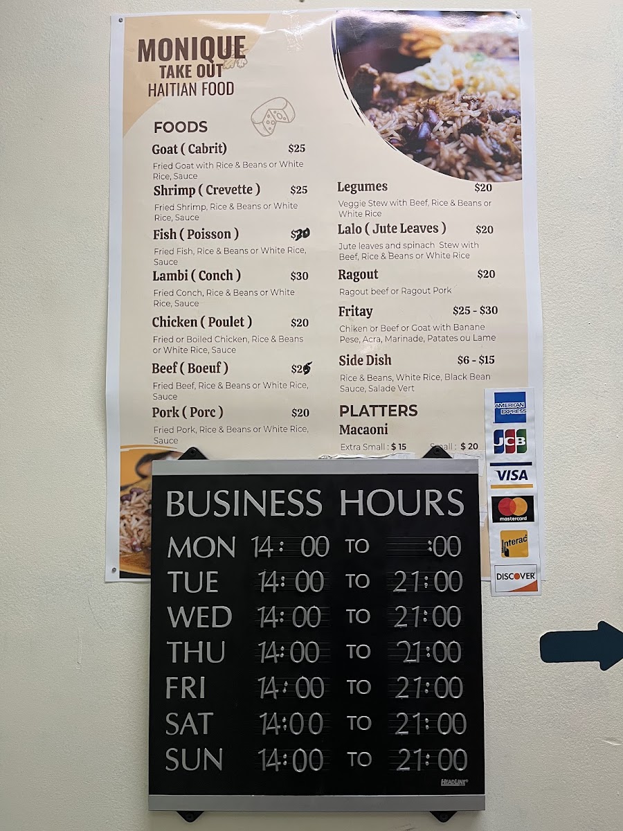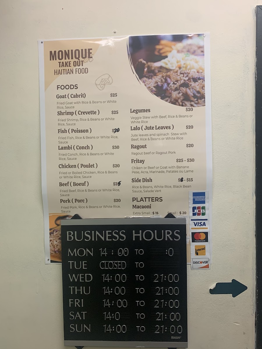 Welcome to Monique Haitian Food, a hidden gem nestled in the basement of an Italian restaurant at 416 Preston St, Ottawa, ON K1S 4M9. While it may take a bit of searching to find, patrons agree that the quest is well worth it. This unique dining spot invites you into an immersive culinary experience that showcases the rich flavors and vibrant culture of Haiti.